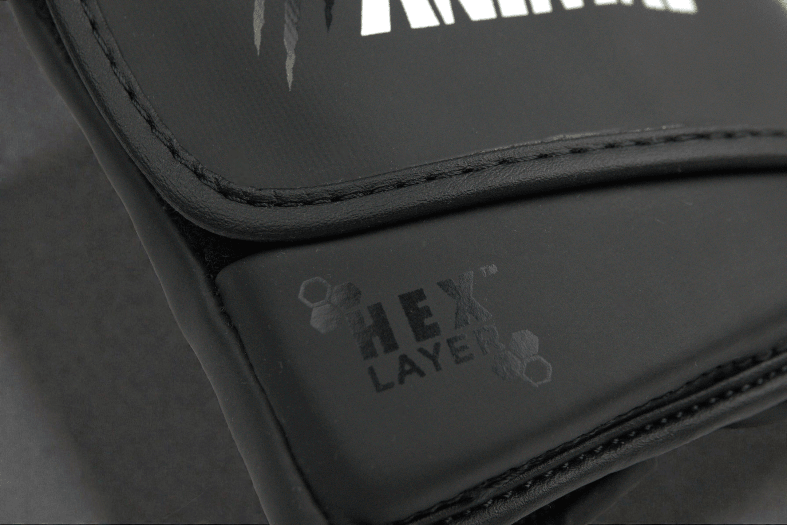 Inside, a six-layer Hex Layerâ„¢ padding system delivers consistent shock absorption. Each layer plays its part: wrist alignment foam, structural PU sheets, injection-mould padding, shredded PU for responsiveness, a firm grip bar and an 8mm internal lining that maintains comfort during longer sessions. The feel is firm on impact but controlled, making the gloves ideal for heavy bag work and high-volume training.